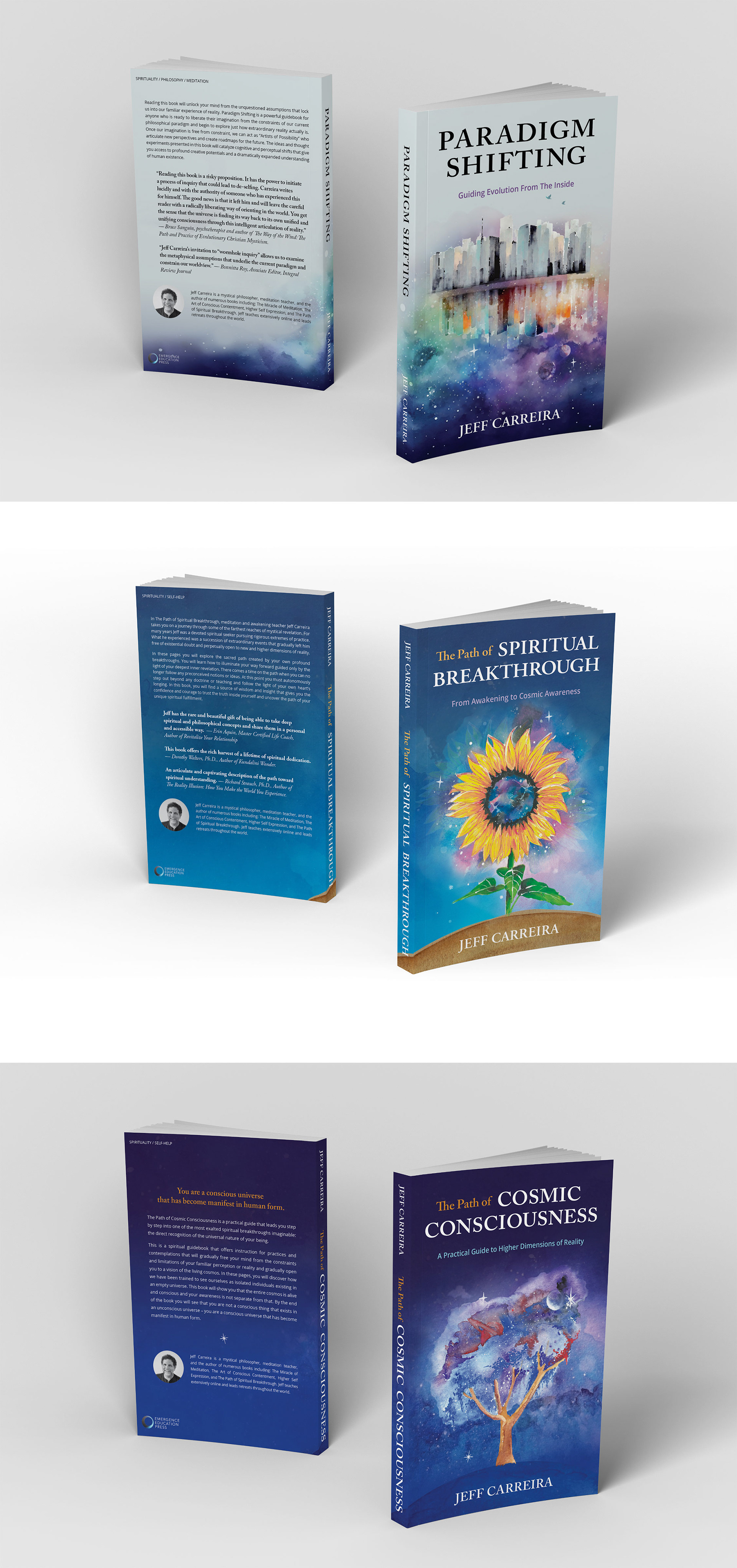 Book cover designs for a series of 3 self-improvement books for a well established spiritual teacher. Each cover features a custom illustration based on its content.